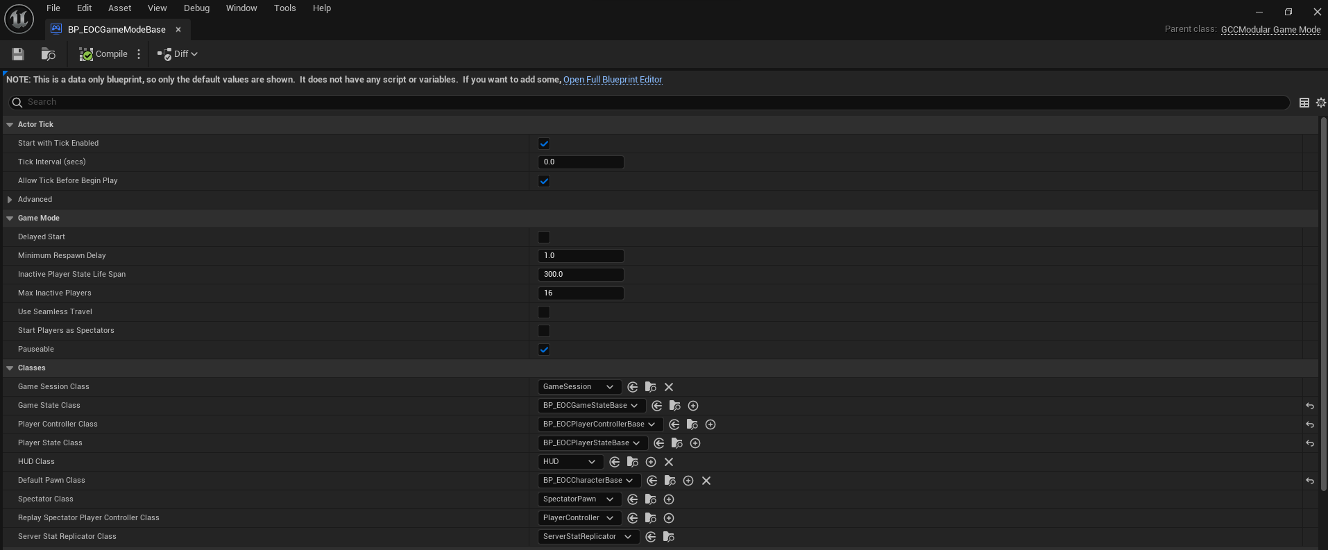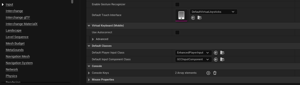 * `EnhancedPlayerInputComponent` for the `Default Input Component Class` to `GCCInputComponent`