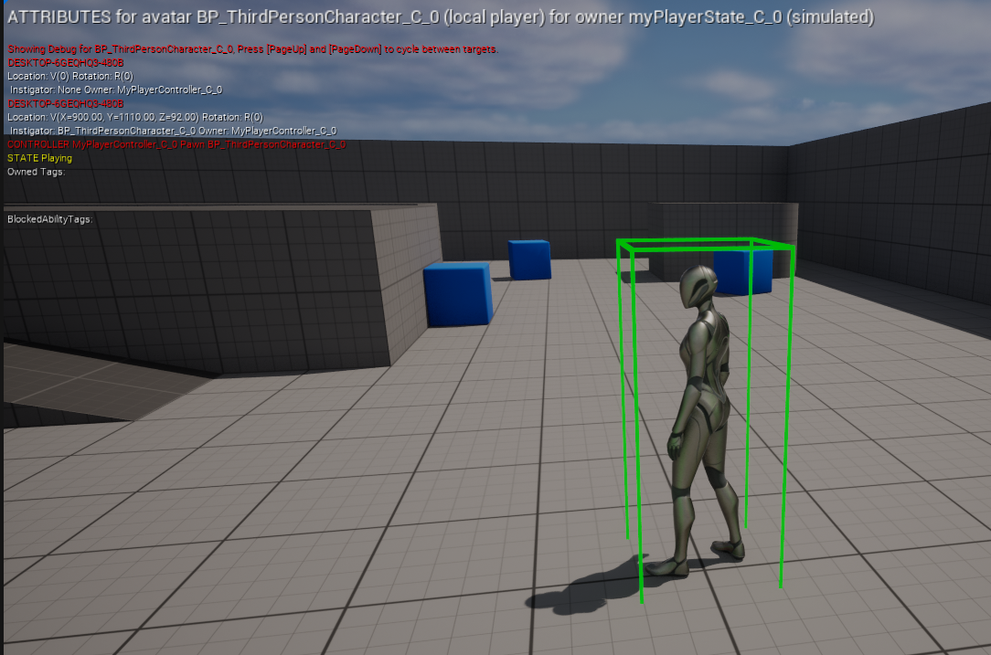 Then, press Play. If we setup everything correctly, we should get no error. To confirm that, enter this command into the console command `showdebug abilitysystem` and you will be greeted with this debug panel.