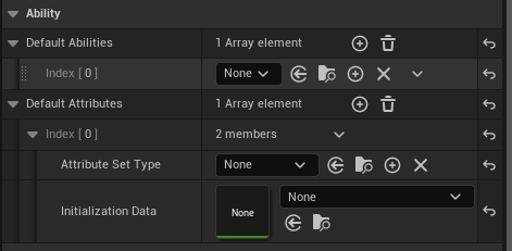 5. Attribute Set Initialization Method where how attribute set will be initialize its values by using GameplayEffect, Ability Set or AttributeSetInitter ( As of GCC v2.6, this is not implemented yet)
